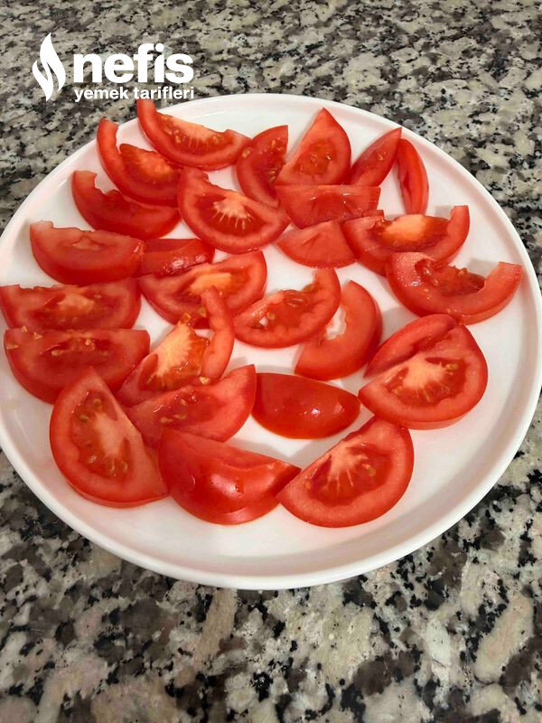 • Yarım ay şeklinde ince dilimlenmiş domates dilimleri (istenilen miktarda)