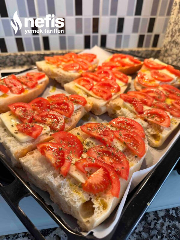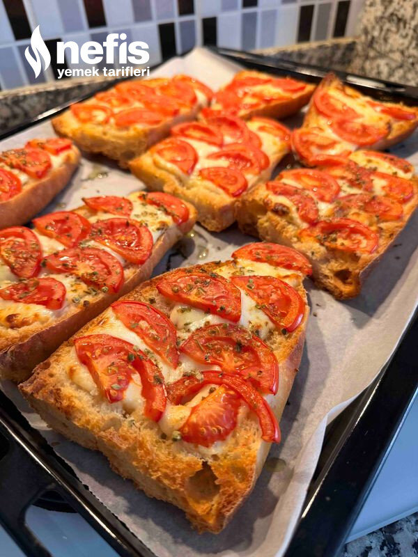 Bayat Ekmek Üstü Pratik Domates Kaşar Pizzası! Tarifi Fotoğraflı Yapılışı