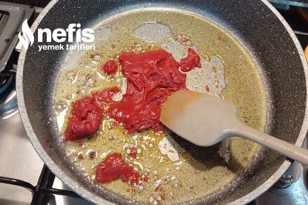 5. Daha sonra 1 yemek kaşığı salçayı kavurun.