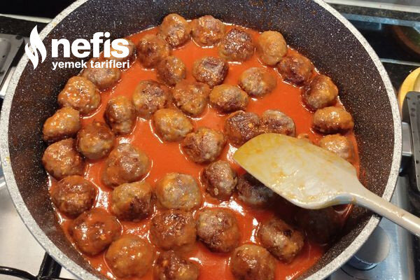 7. Daha sonra köfteleri tekrar ekleyip karıştırın yaklaşık 10 dakika daha orta ateşte tencere kapağı kapalı bir şekilde pişirmeye devam edip altını kapatın.