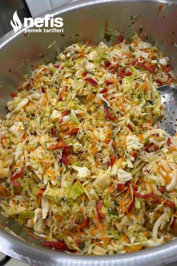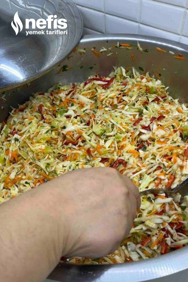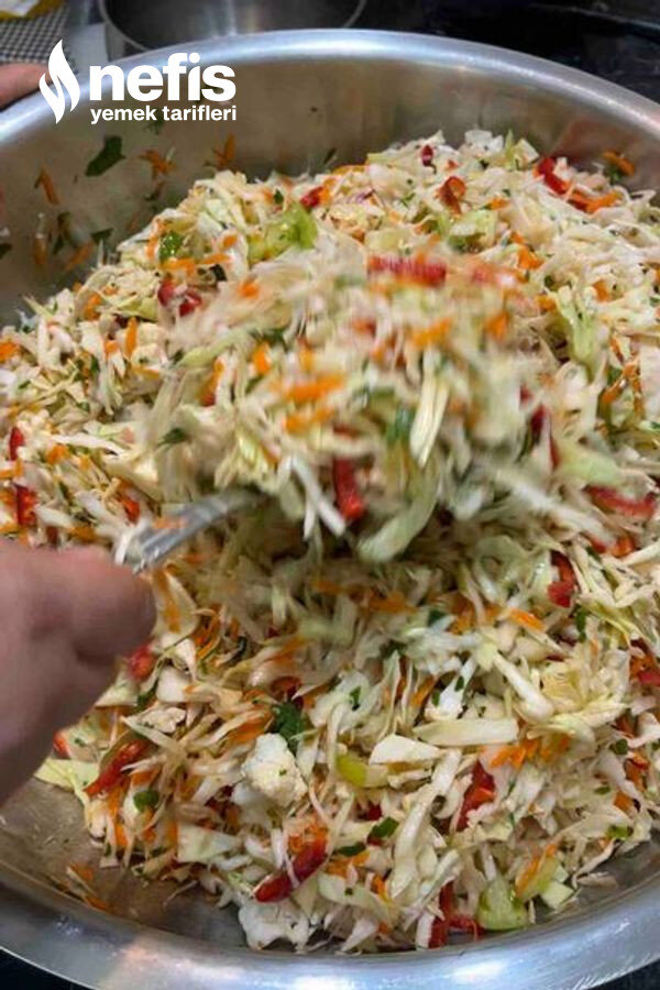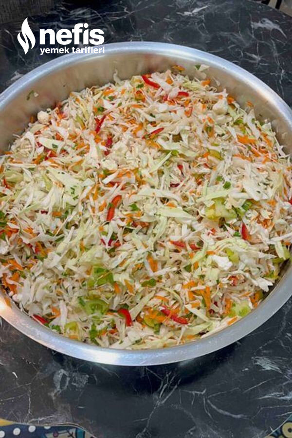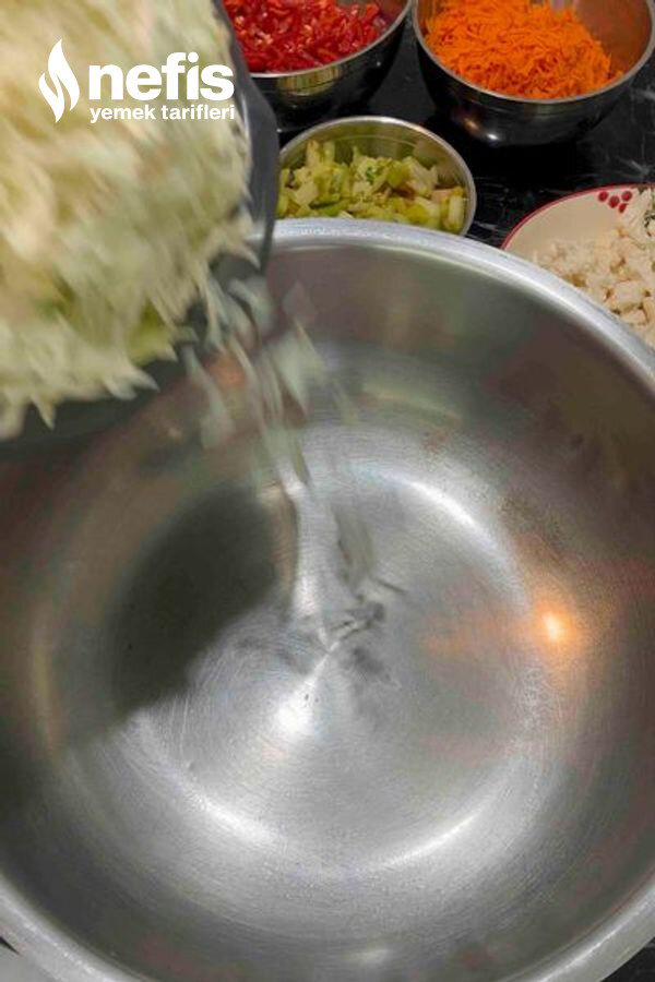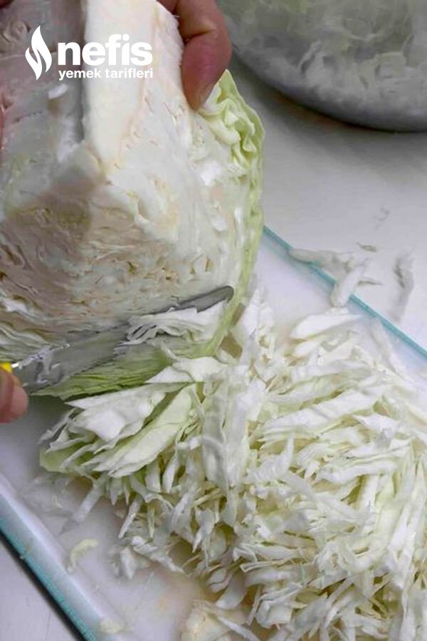 1. Lahana çok ince olmayacak şekilde kıyılır.