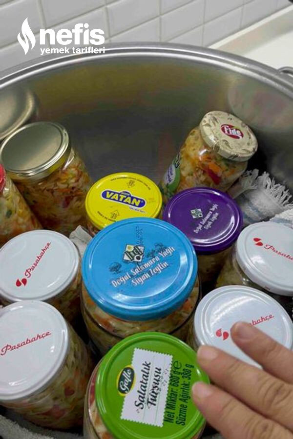 18. Geniş bir tencerenin dibine bir bez serelim kavanozları dik şekilde koyalım üzerine hafif ılık su dökelim.