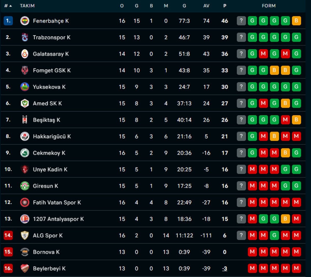Fenerbahçe, bu galibiyetle ligde puanını 46’ya yükselterek liderliğini sürdürdü.