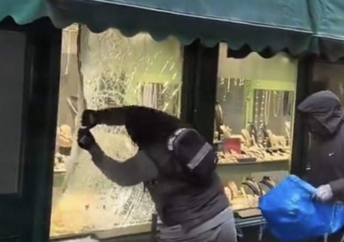 Mağazanın dışından, mücevherlerin sergilendiği vitrine yönelen saldırganlar; rafları koruyan camekanı ellerindeki aletlerle kırmaya başladı.