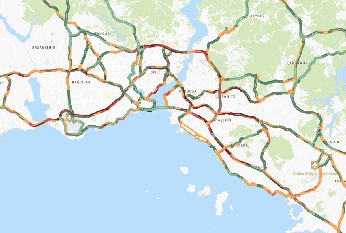 Avrupa Yakası’nda D-100 kara yolunda, Yenibosna, Bakırköy, Cevizlibağ, Haliç Köprüsü, Çağlayan, Okmeydanı, Mecidiyeköy ve 15 Temmuz Şehitler Köprüsü girişinde araçlar yavaş ilerliyor.