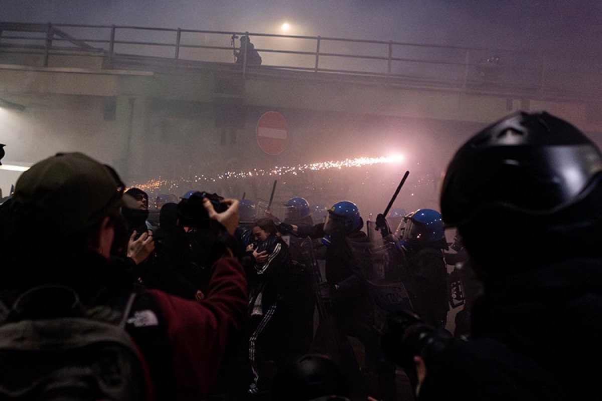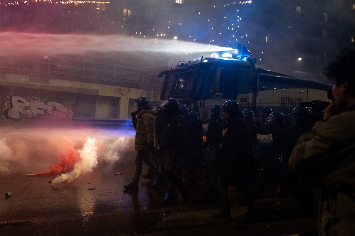 Güvenlik güçleri, havai fişek atan göstericilere copla müdahalede bulundu. İtalyan basınında yer alan haberlere göre olaylarda 6 kişi gözaltına alındı.