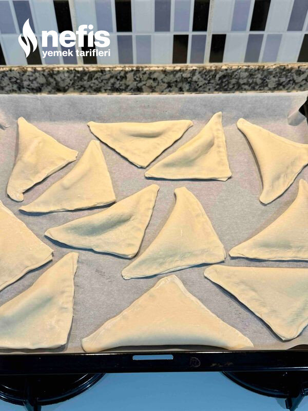 Katlanılan milföyleri içine yağlı kağıt serilen fırın tepsisine birbirlerine çok yakın olmayacak şekilde dizin.
