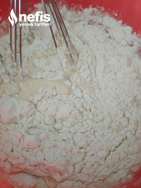 2. Sonrasında içine tuz, sıvı yağ ve un ekleyelim ve karıştıralım.