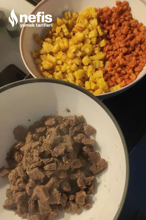 2. Ardından etimizi doğranmamış ise küçük küçük doğrayıp haşlayalım.