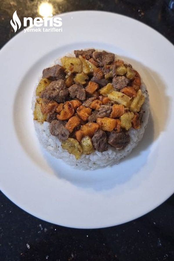 7. Hazır olan pilavı et sotemiz ile birleştirelim pilavımız hazır afiyet şifa olsun 😊💯.