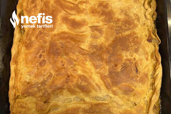 - İkinci takım olan 4 katlı hamurumuzu yine tepsi boyutunda açalım ve iç harcın üzerine yayalım.