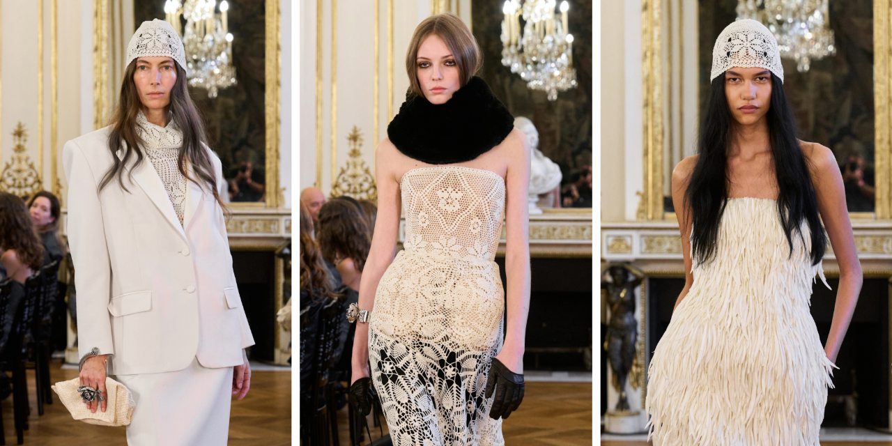 Floral formları, zarafeti ve feminenliği modern bir yorumla aynı çatı altında buluşturan Magda Butrym, Sonbahar/Kış 2026 koleksiyonu için adeta bir kış masalı yaratmayı hedefliyor. Koleksiyonda tasarımlar siyah ve beyaz renk spektrumunda birbirinden hacimli portrelere imza atıyor, tığ işi danteller sonbahar-kışın ana karakteri haline geliyor.