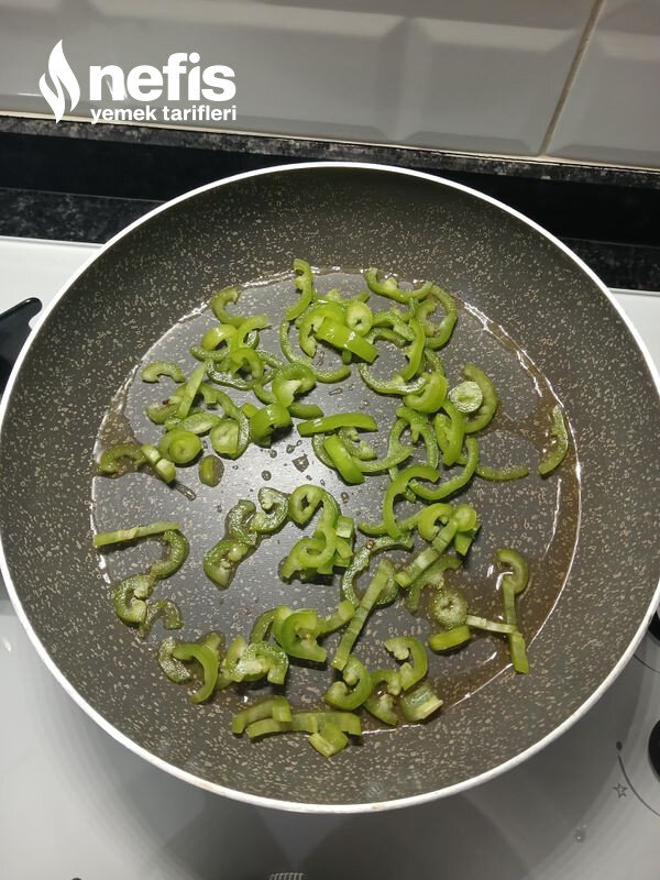 4. Doğradığımız yeşil biberi de tavaya alıp birkaç dakika kavuralım.