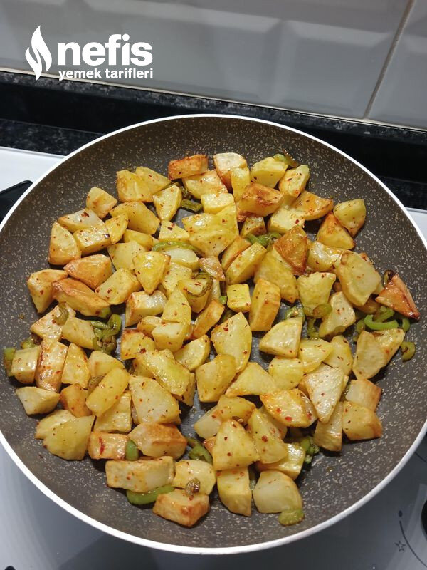 5. Biberler kavrulunca kızaran patatesleri ekleyelim.