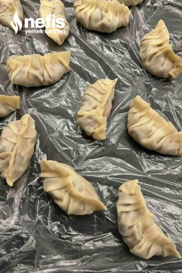 Bütün gyozalar dolduktan sonra buzluğuna atıp,pişireceğiniz zaman yapışmaz bir tavaya çok ay sıvı yağ ekleyin,gyozaları üzerine donuk şekilde dizin,biraz altları kızardığında üzerine üstünü geçmeyecek kadar su ekleyin,üstüne kapak kapatın ortalama 7 dk da suyunu çekecek ve sanki buharda pişmiş gibi bir gyozanız olacak.