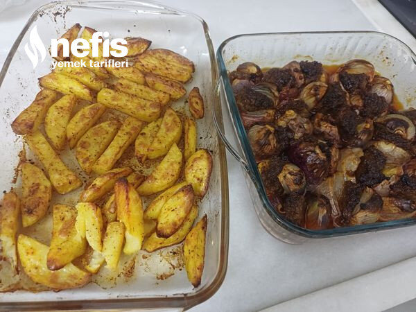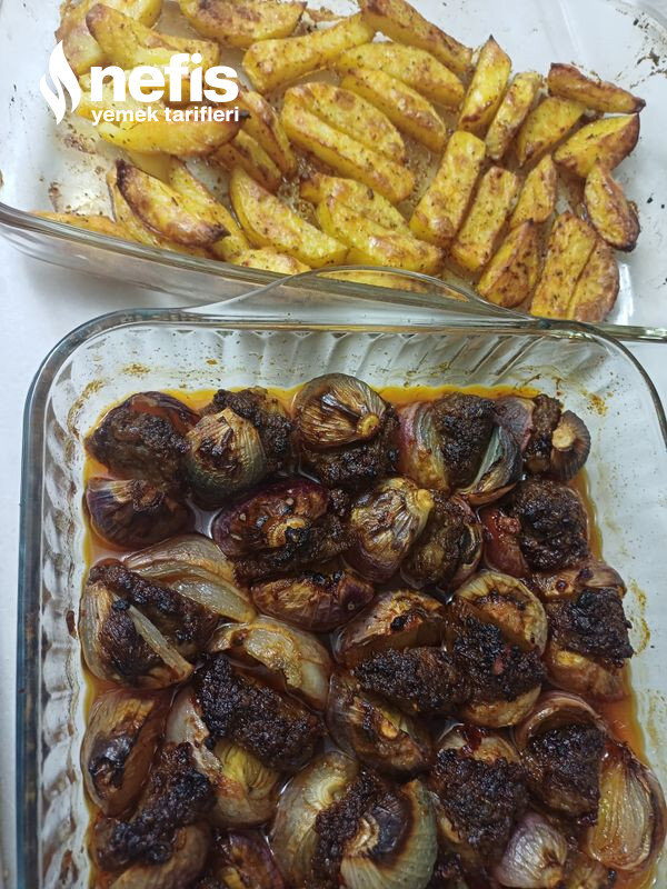 Not=isterseniz soğan kebabımızın yanına biraz patates elma dilimi gibi kesip baharatlayıp başka tepside pişirebilirsiniz kebabımızın yanına güzel oluyor çocuklarda seviyor.