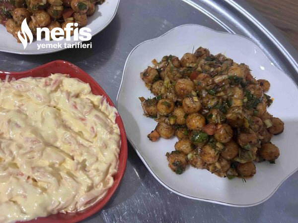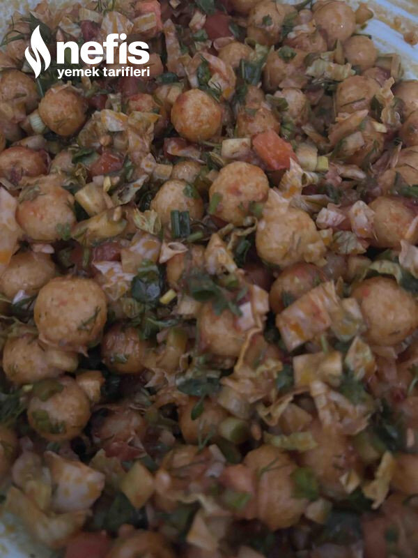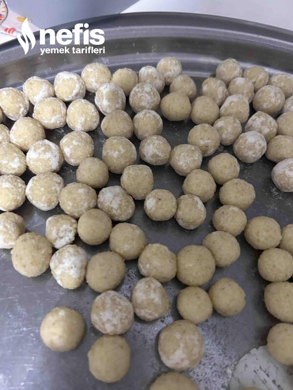 3. Daha sonra küçük küçük yuvarlayalım (felh köfte gibi). Yuvarlama işlemi bittikten sonra uygun tencerede kaynayan suya yuvarladığımız köfteleri ekleyip bir iki taşım kaynattıktan sonra uygun bir kaba alıp soğumaya bırakalım.