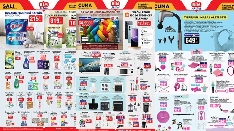 Bim aktüel 20-23 Ocak 2026 kataloğu yayımlandı. Bim aktüel 26 Ocak 2026 kataloğu bu hafta; Titreşimli Masaj Aleti Seti 649 TL, Ağırlık Topu 219 TL, El Kavrama Seti 149 TL, Yoga/Pilates Matı 479 TL’ den raflarda ve bim online alışveriş sitesi bim.com.tr’de satışa hazır. Peki, bim’de bu hafta cuma neler var? İşte, bim 26 Ocak 2026 kataloğu tamamı…
