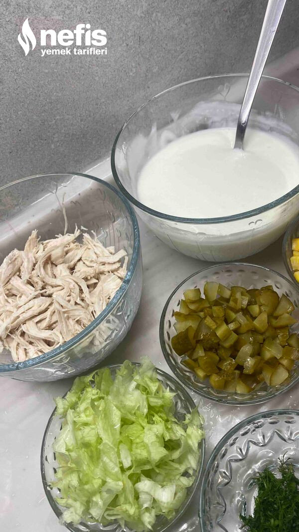 - 1 parça tavuk göğsü haşlanmış didiklenmiş