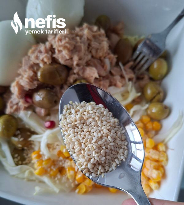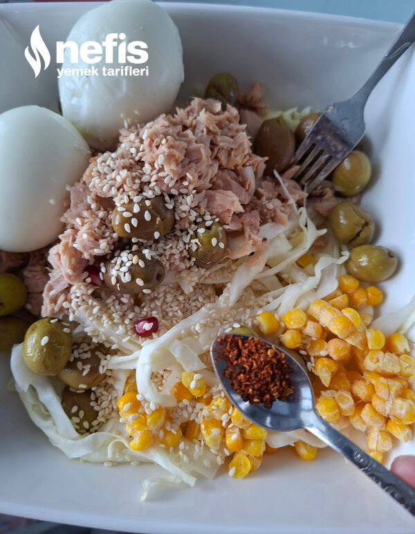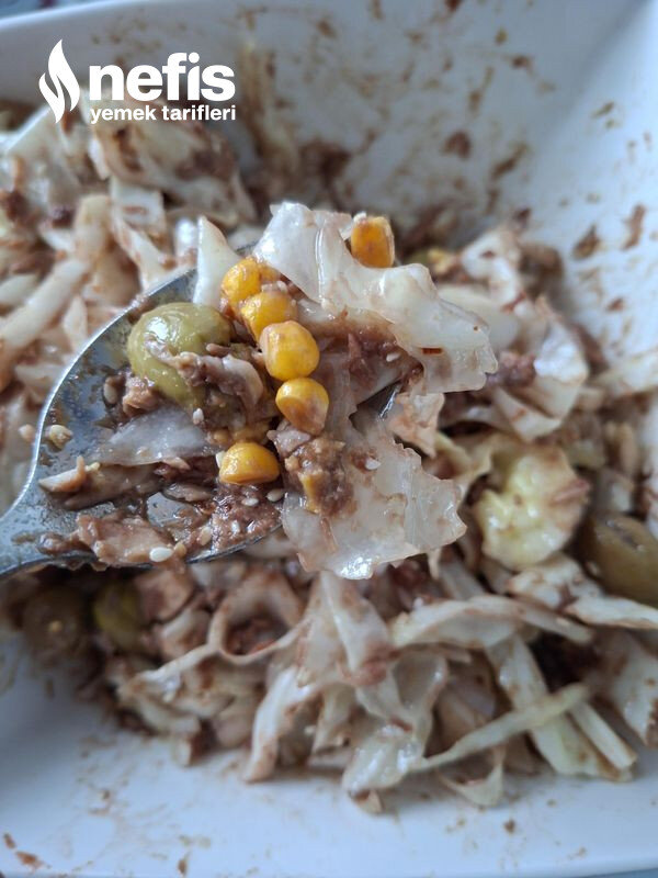 Ton Balıklı Beyaz Lahana Salatası Tarifi Fotoğraflı Yapılışı