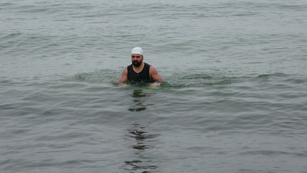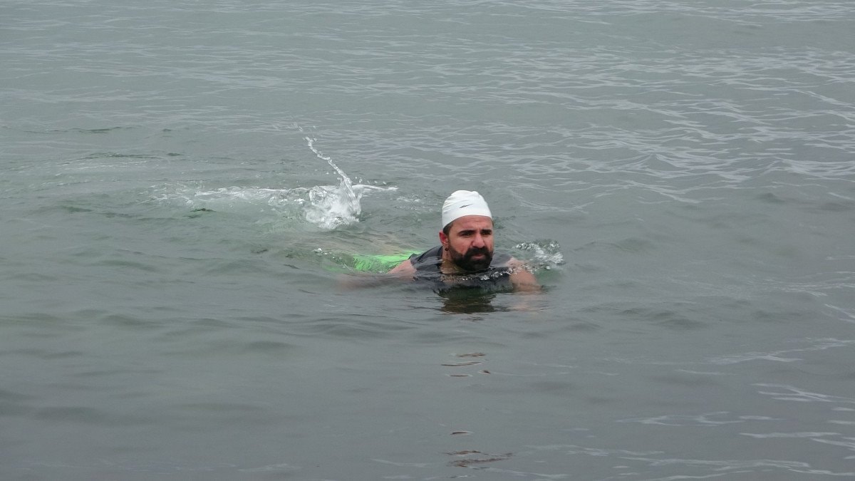 Van’da özel eğitim öğretmenliği yapan bir Muhammed Türken, hem sağlıklı yaşama teşvik etmek hem de kış turizminin potansiyelini vurgulamak amacıyla Van Gölü’nün dondurucu ve dalgalı sularına girdi.