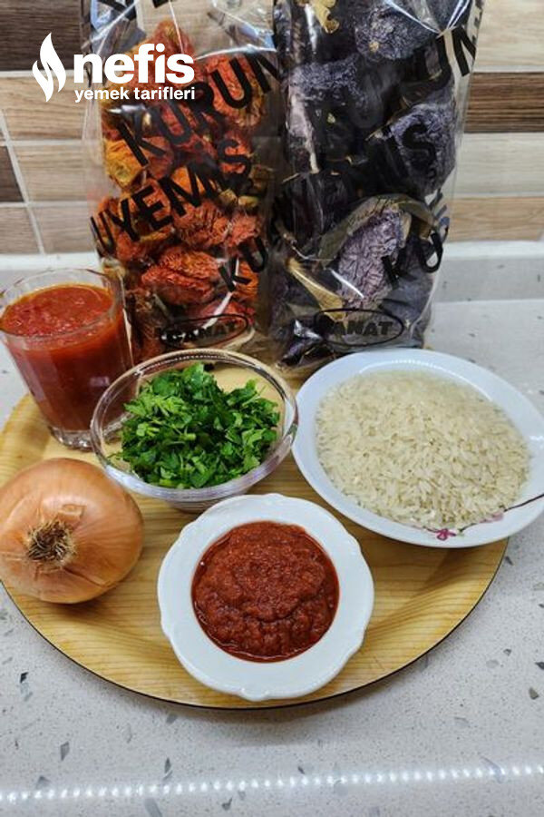 Zeytinyağlı Kuru Biber Patlıcan Dolması Tarifi İçin Malzemeler